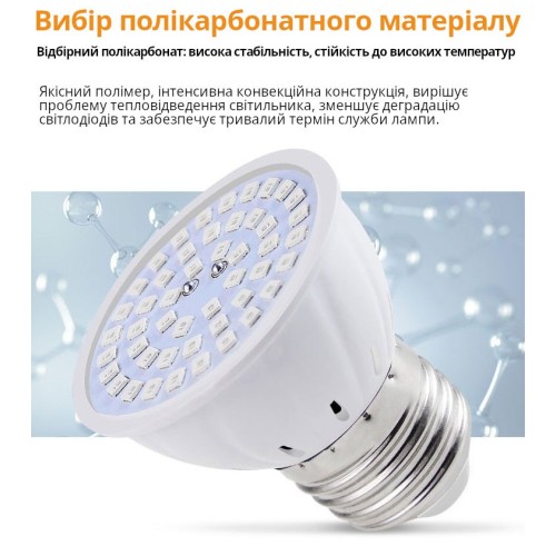 Фитолампа не имеет защиты от воды, поэтому она не подходит для помещений с высокой влажностью. Лампа обладает компактным корпусом и легко устанавливается в стандартный патрон E27. Рекомендуется использовать в светильниках, обеспечивающих пассивный отвод тепла.