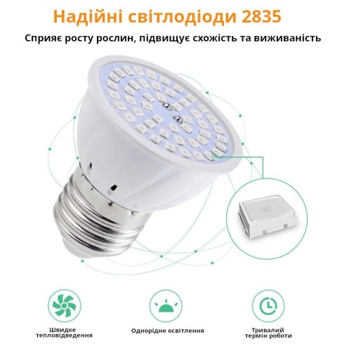 Фитолампа не имеет защиты от воды, поэтому она не подходит для помещений с высокой влажностью. Лампа обладает компактным корпусом и легко устанавливается в стандартный патрон E27. Рекомендуется использовать в светильниках, обеспечивающих пассивный отвод тепла.