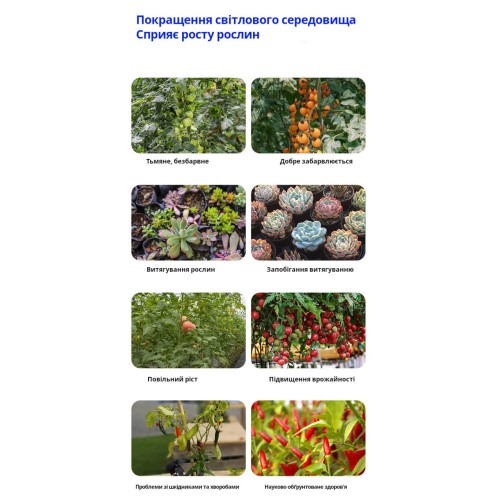 Холодный Белый Свет: (6000 К) Имитирует солнечный свет, способствует активной вегетации и сокращению междоузлий.