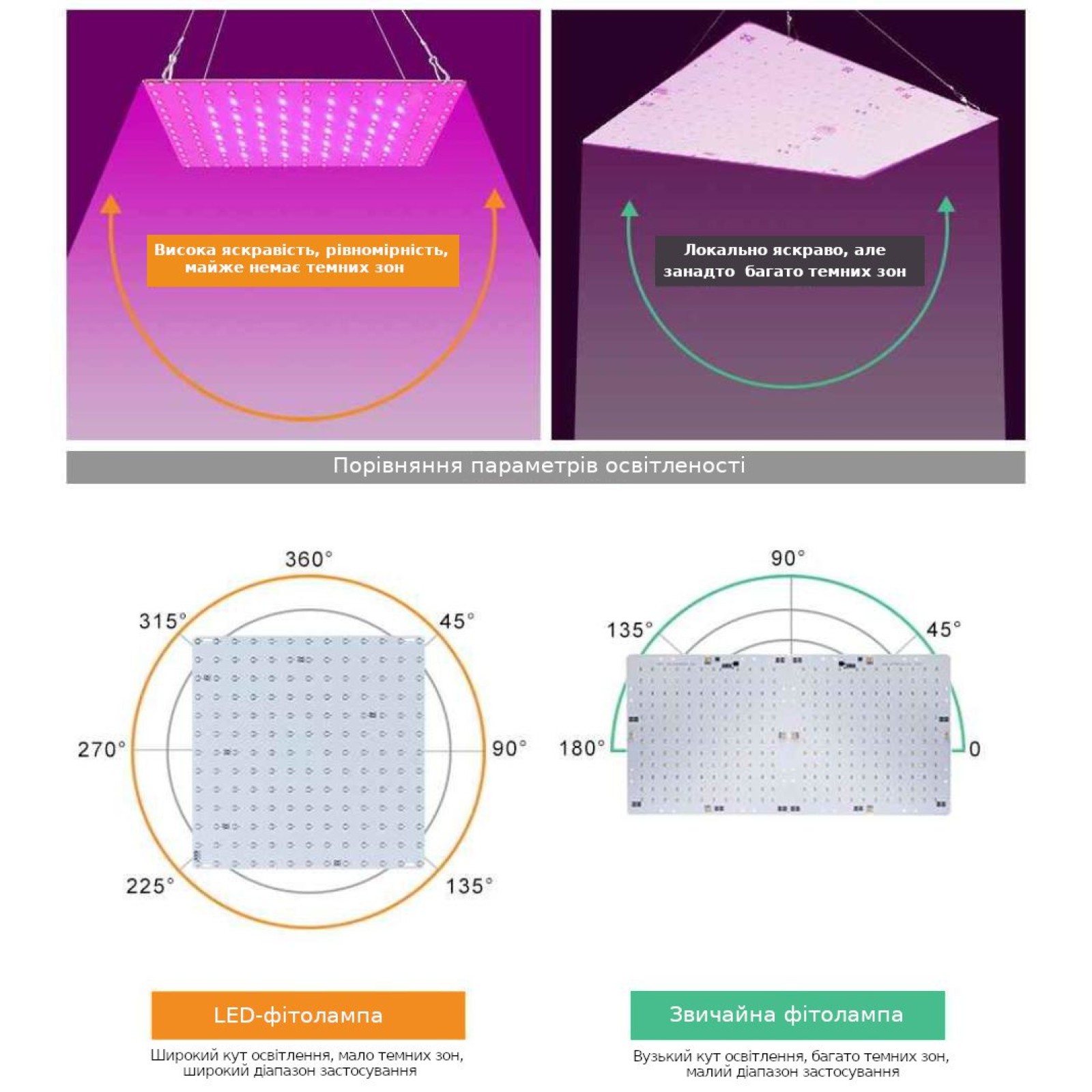 Світлодіодна фітопанель Full Spectrum GR-45 підходить для циклу росту рослин. Сині світлодіоди з довжиною хвилі 450 нм та червоні 630-650 нм, пропорція 1:2,5. Діапазон випромінювання розширено за рахунок додавання таких кольорів як білий, інфрачервоний (далекий червоний) 720 нм, ультрафіолетовий 395 нм. Такий спектр підходить для будь-якого універсального застосування (розсади, кімнатних кольорів, зелені); доречний на всіх етапах росту рослини за винятком пророщування насіння, так як далекий червоний може пригнічувати їх проростання, як тільки проросли - можна.
