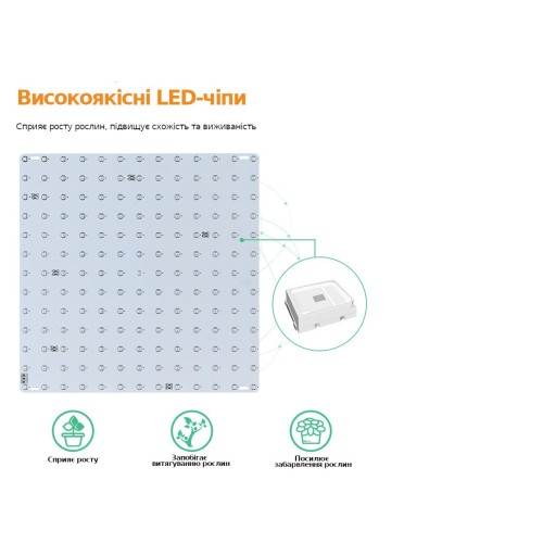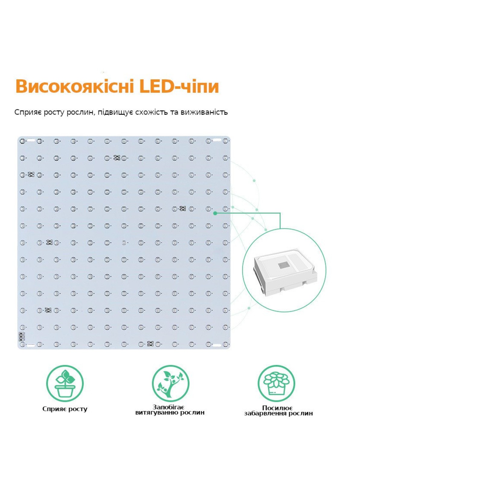 Світлодіодна фітопанель Full Spectrum GR-45 підходить для циклу росту рослин. Сині світлодіоди з довжиною хвилі 450 нм та червоні 630-650 нм, пропорція 1:2,5. Діапазон випромінювання розширено за рахунок додавання таких кольорів як білий, інфрачервоний (далекий червоний) 720 нм, ультрафіолетовий 395 нм. Такий спектр підходить для будь-якого універсального застосування (розсади, кімнатних кольорів, зелені); доречний на всіх етапах росту рослини за винятком пророщування насіння, так як далекий червоний може пригнічувати їх проростання, як тільки проросли - можна.