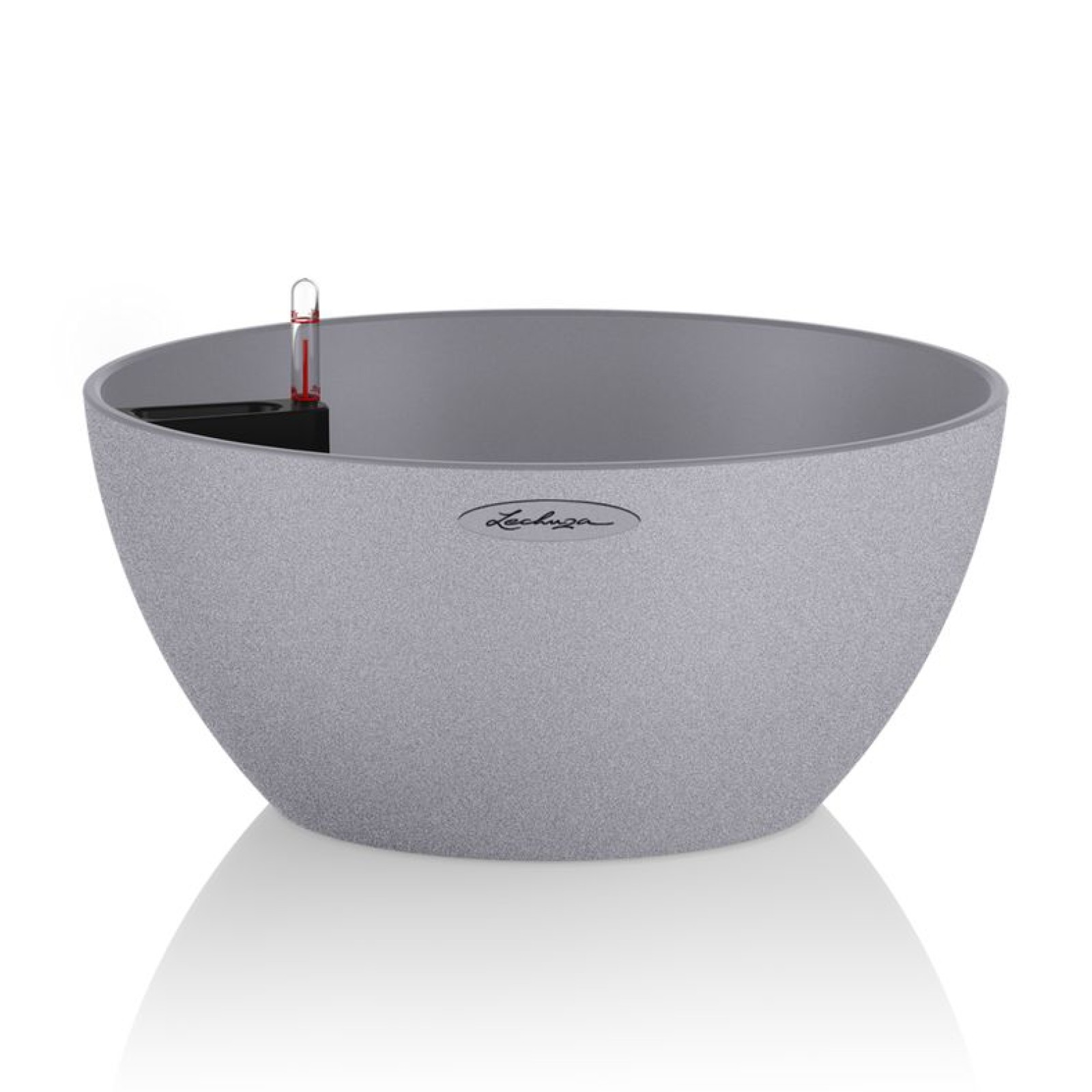 LECHUZA CUBETO Stone доступний у кольорах пісочно-бежевий, чорний графіт та сірий камінь, а також у розмірах 30 см та 40 см.