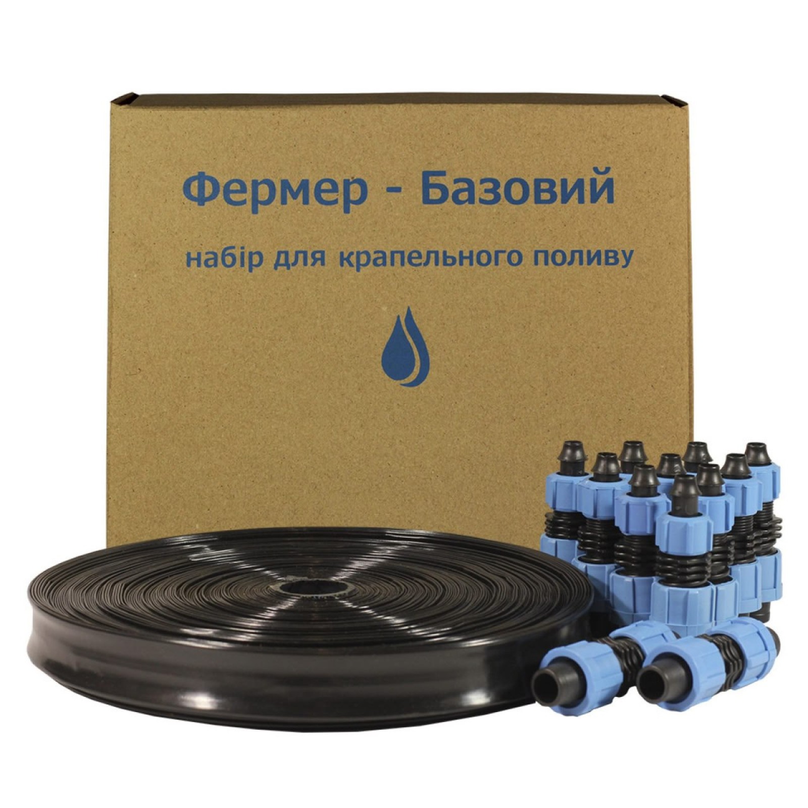 Набір для крапельного поливу "Фермер Базовий" в першу чергу призначений для людей, які вирішили перейти зі звичайного поливу на крапельний або вже користувалися крапельним поливом, але мають невелику ділянку, що поливається. Ціна набору є символічною, але при цьому набір розрахований для поливу 50 метрів грядок.