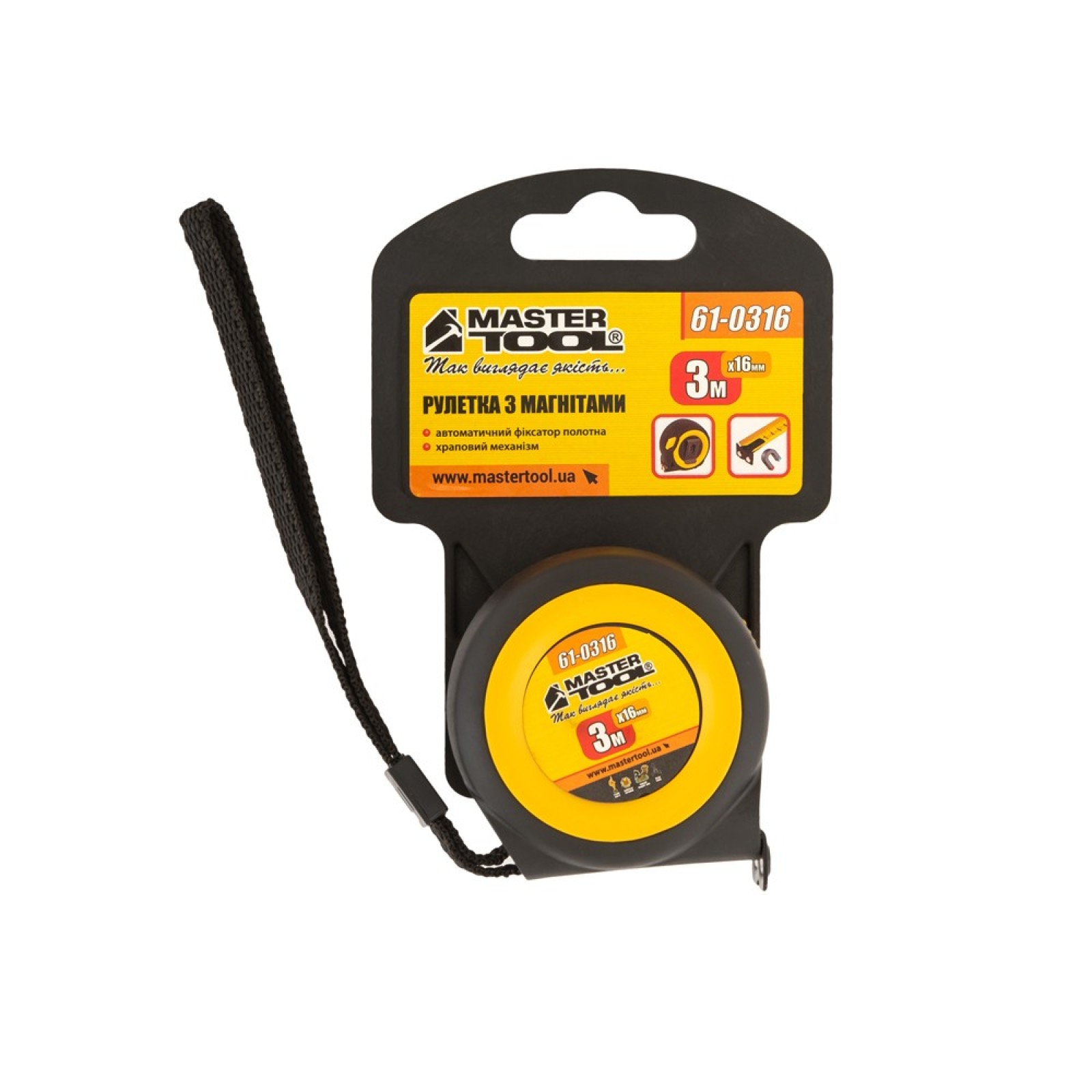 Купити Рулетка MASTERTOOL 3 м 16 мм з магнітами автоматичний фіксатор покриття TPR храповий механізм