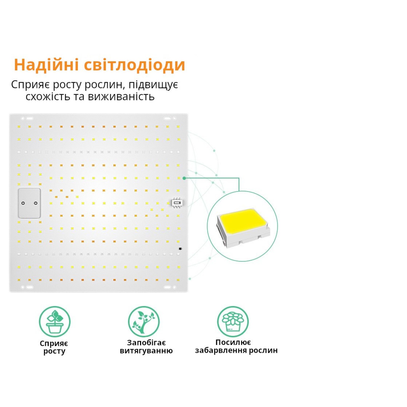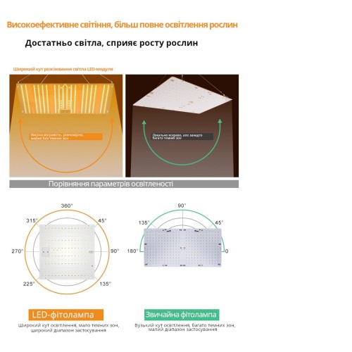 Світлодіодна фітопанель Full Spectrum GR-45 підходить для циклу росту рослин. Сині світлодіоди з довжиною хвилі 450 нм та червоні 630-650 нм, пропорція 1:2,5. Діапазон випромінювання розширено за рахунок додавання таких кольорів як білий, інфрачервоний (далекий червоний) 720 нм, ультрафіолетовий 395 нм. Такий спектр підходить для будь-якого універсального застосування (розсади, кімнатних кольорів, зелені); доречний на всіх етапах росту рослини за винятком пророщування насіння, так як далекий червоний може пригнічувати їх проростання, як тільки проросли - можна.