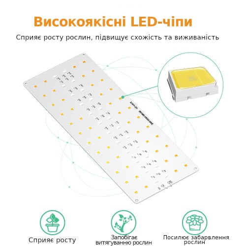 Світлодіодна фітопанель Full Spectrum GR-45 підходить для циклу росту рослин. Сині світлодіоди з довжиною хвилі 450 нм та червоні 630-650 нм, пропорція 1:2,5. Діапазон випромінювання розширено за рахунок додавання таких кольорів як білий, інфрачервоний (далекий червоний) 720 нм, ультрафіолетовий 395 нм. Такий спектр підходить для будь-якого універсального застосування (розсади, кімнатних кольорів, зелені); доречний на всіх етапах росту рослини за винятком пророщування насіння, так як далекий червоний може пригнічувати їх проростання, як тільки проросли - можна.