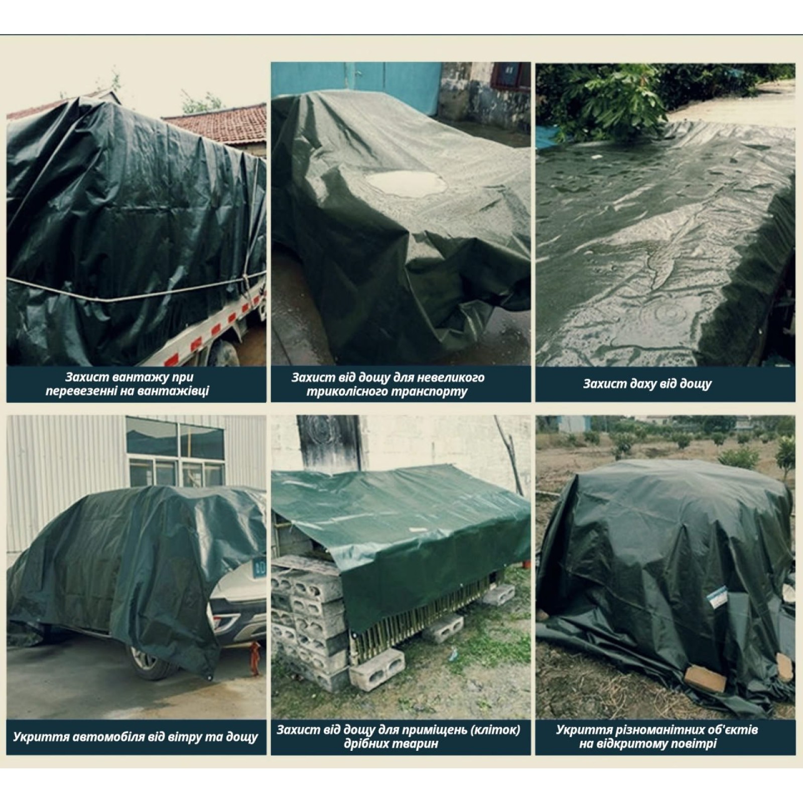 Тент водонепроникний зміцнений (тарпауліновий), призначений для надійного захисту від сонця, дощу, пилу та інших несприятливих погодних умов.