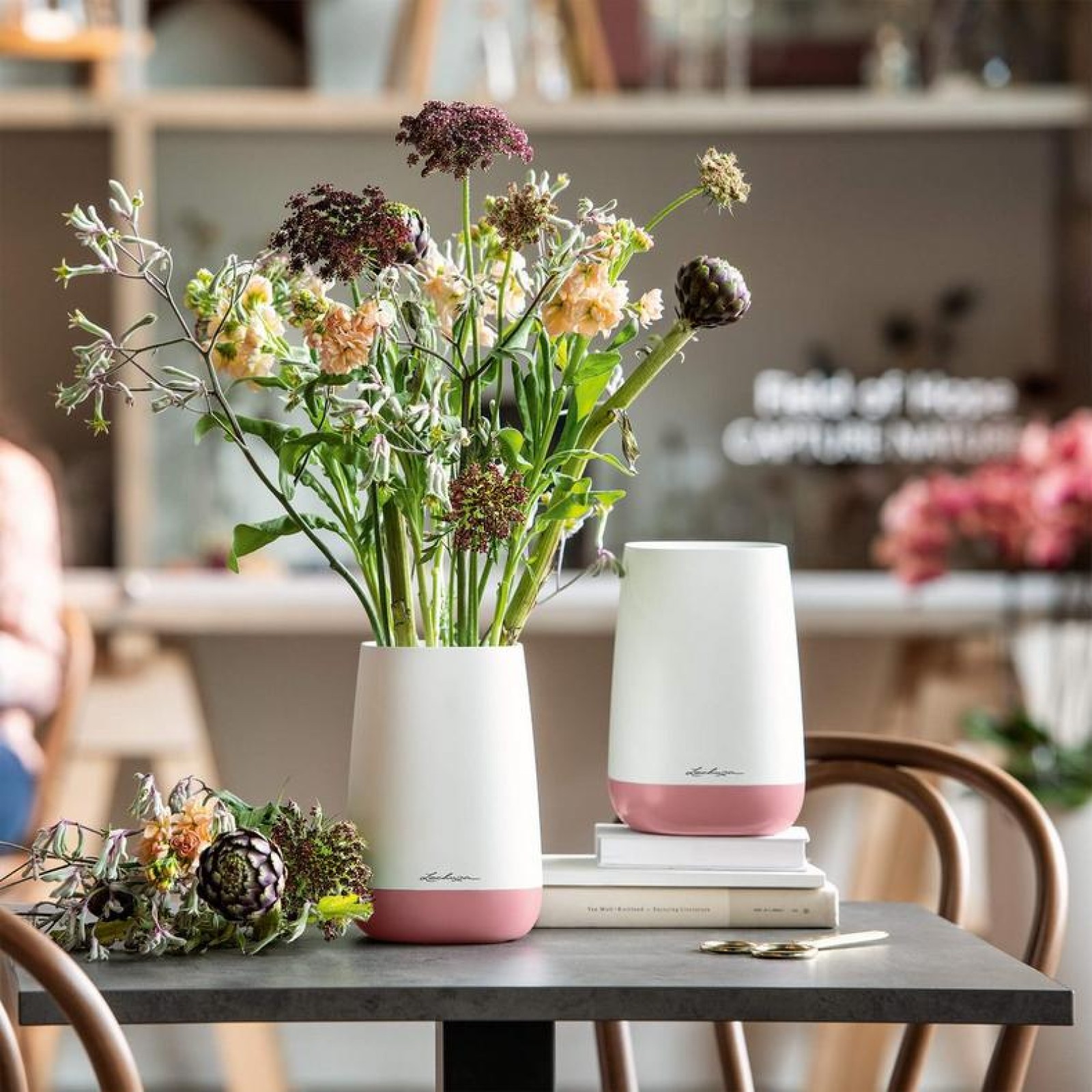 У вазу поміщаються свіжозрізані квіти і створюються таким чином квіткові композиції. Завдяки гармонійним пастельним кольорам, матовим поверхням та чистим формам цей аксесуар можна використовувати в будь-якому інтер'єрі.
